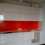 Угловая кухня под заказ с фасадами из пластика. Скинали - закаленное стекло с фотопечатью. Столешница - постформинг Egger. Фурнитура BLUM, Hettich.